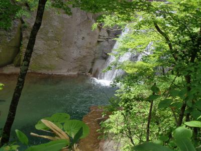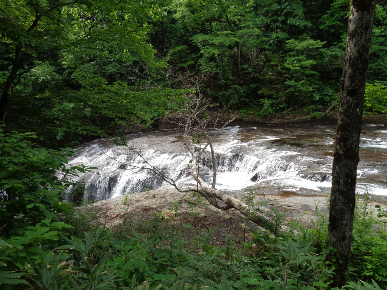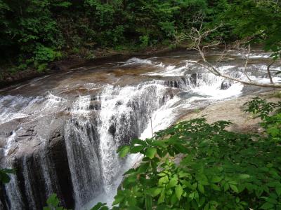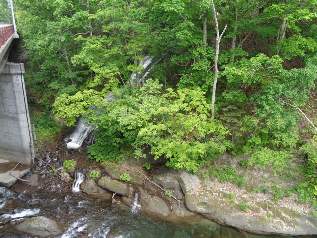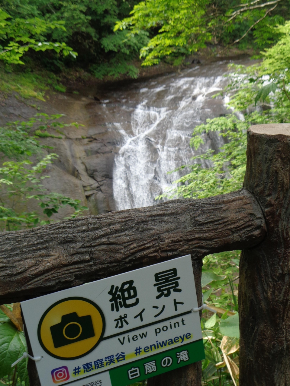 メインとなる三階の滝は、橋の上から見る感じで、そこそこきれいな滝ですが、駐車場からどちらに行ったらいいのかわかるような案内版や標識もなく(かろうじて道路には、それかもという色がついてましたが)、不親切な観光地の印象。
