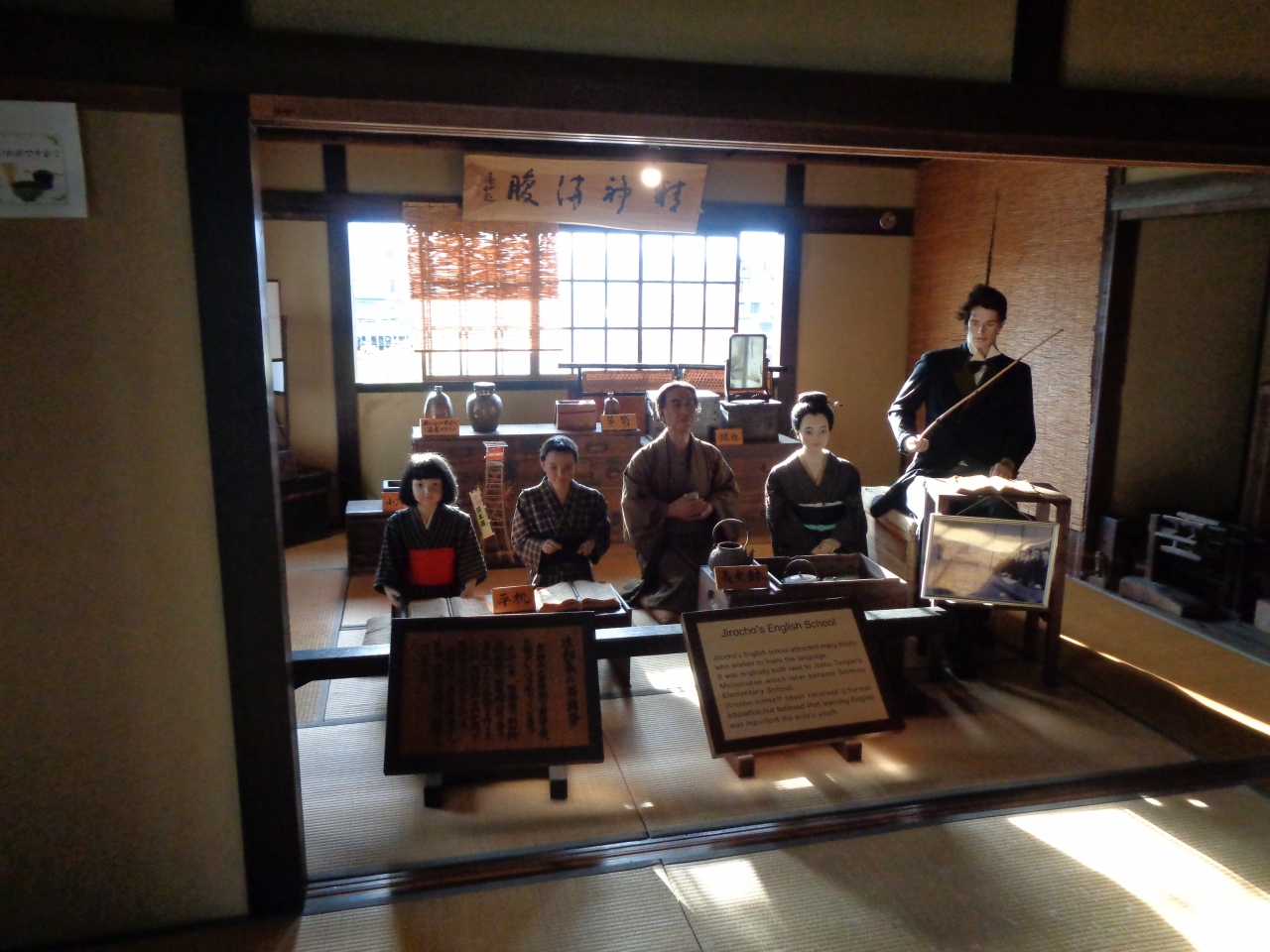 建物は2階建てで、2階は次郎長が開いたという英語塾を再現していました。