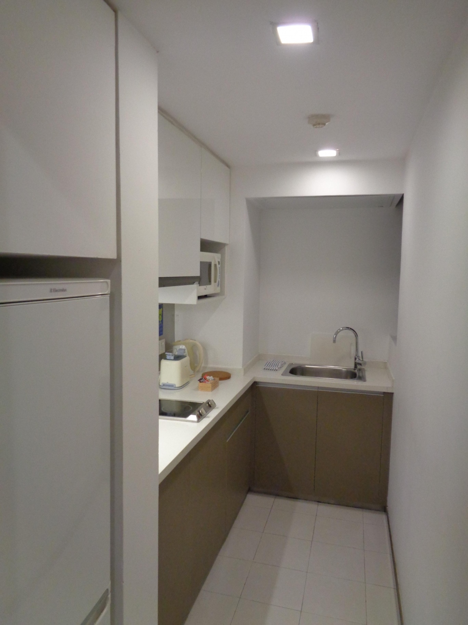 豪華さはないけど、機能的。この値段でベットルーム、リビングに分かれているのはすごい。その上キッチンと食器もついてます。