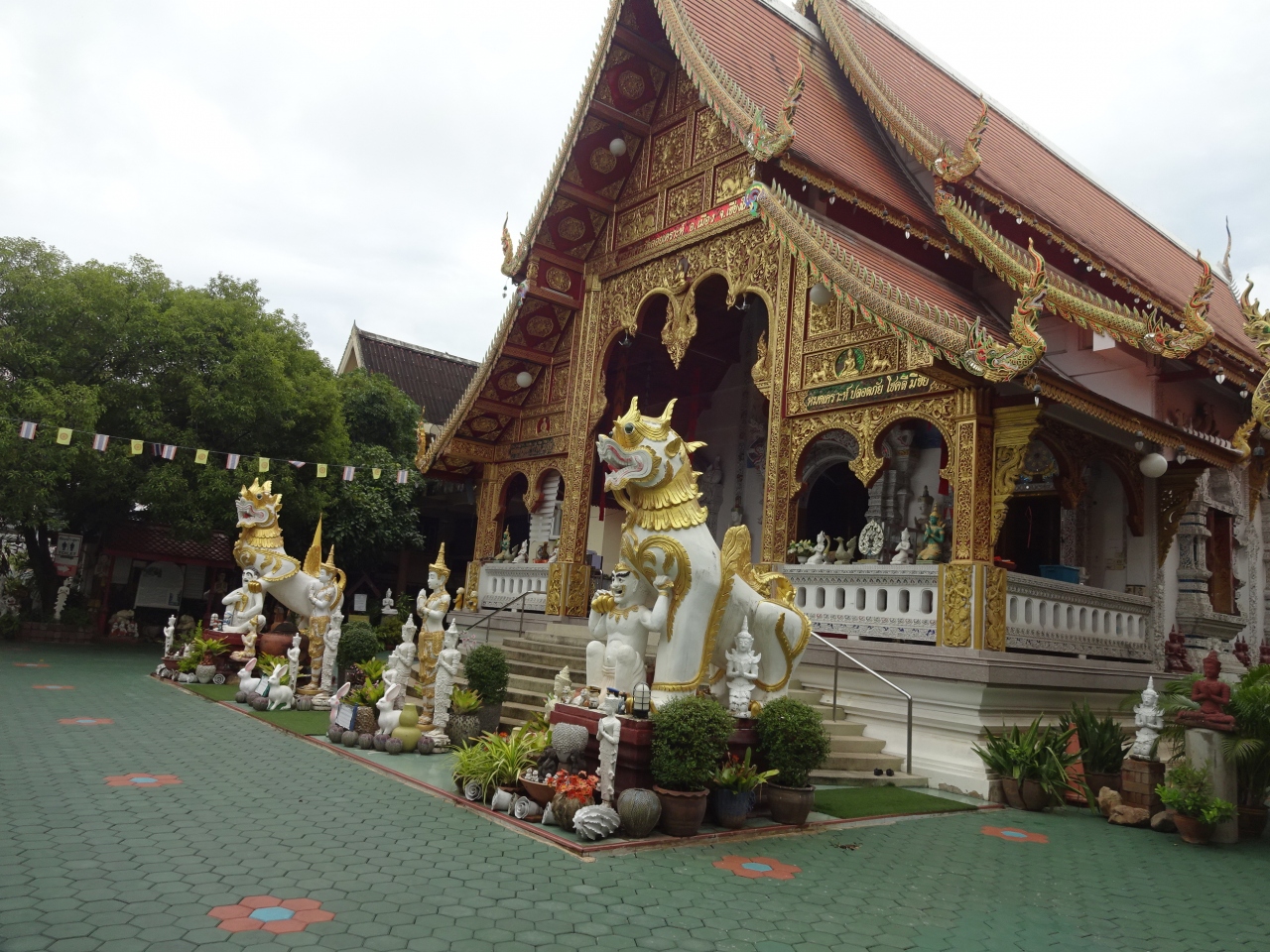 ランナー民族博物館の隣、ちょっと奥まった感じのところにあります。境内も、本堂も、白い仏塔も、すべてがコンパクトな感じ。でもきれいにしてあるので、気持ちのいいお寺だと思います。ベンチ付きの記念写真スポット?までありました。