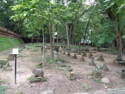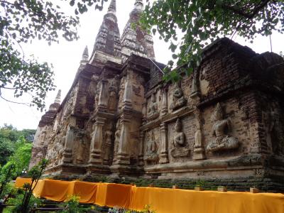 かなり古そうな遺跡風のお寺です。インドのお寺をモデルにしたそうで、チェットヨートというのは7つの尖塔という意味だそうですが、確かに、1本の高い尖塔の周りに6本の低めの尖塔がありました。