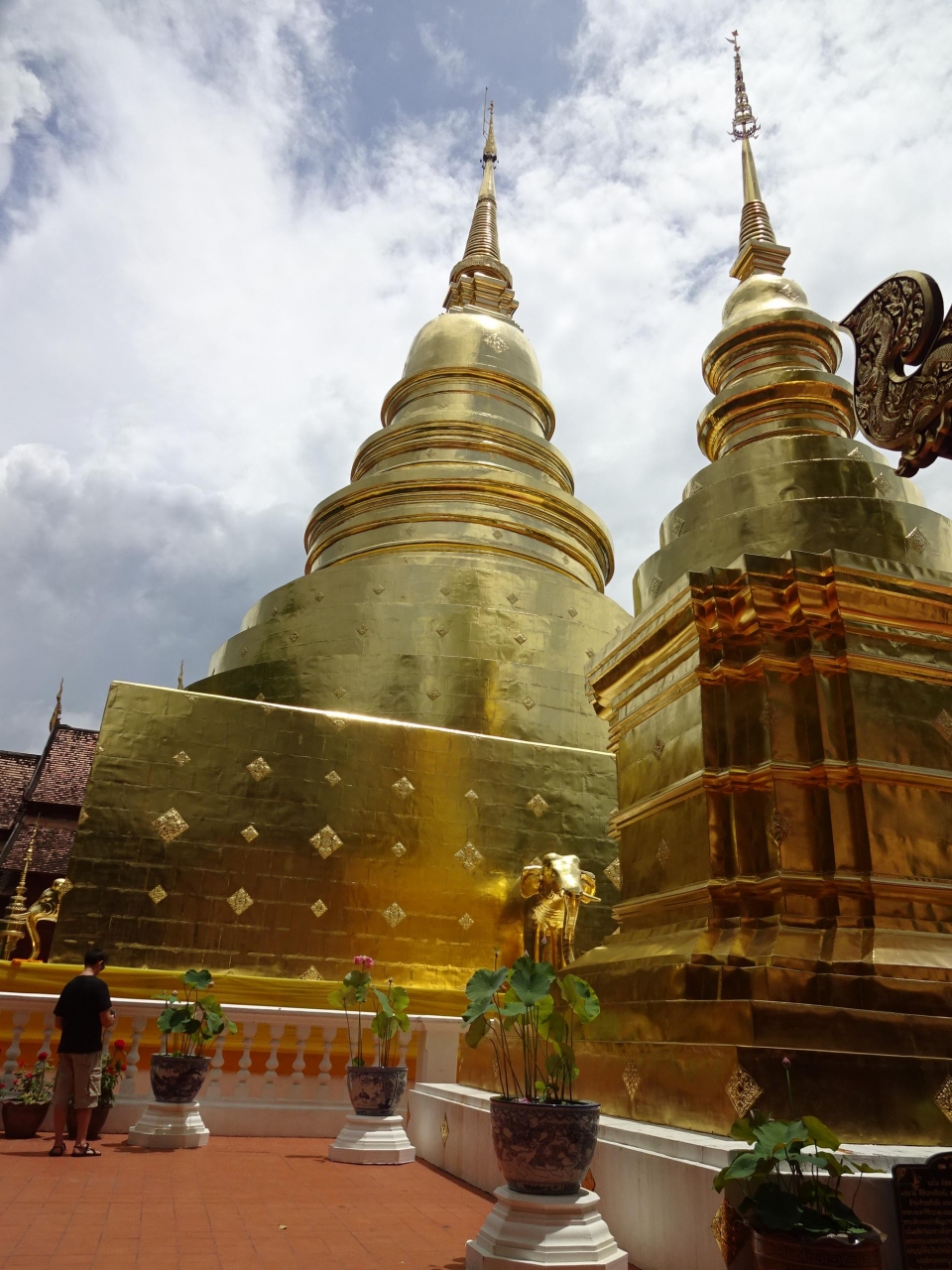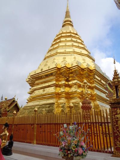 何より大きな金色の仏塔が印象的。お供えのお花を持って3周するとご利益があるらしく、たくさんの人がお花を持って回っていました。(つい、真似してしまいましたが。)。