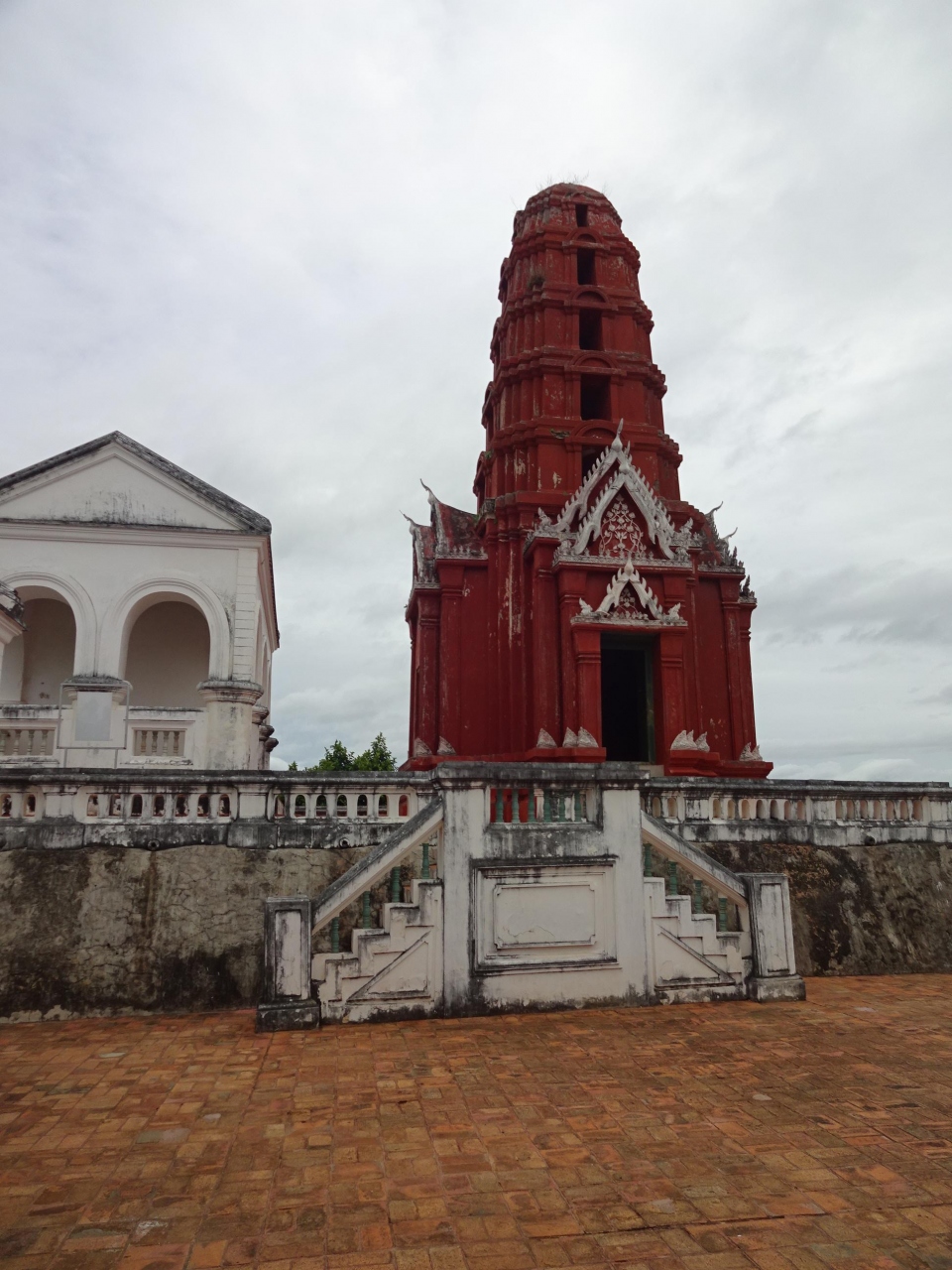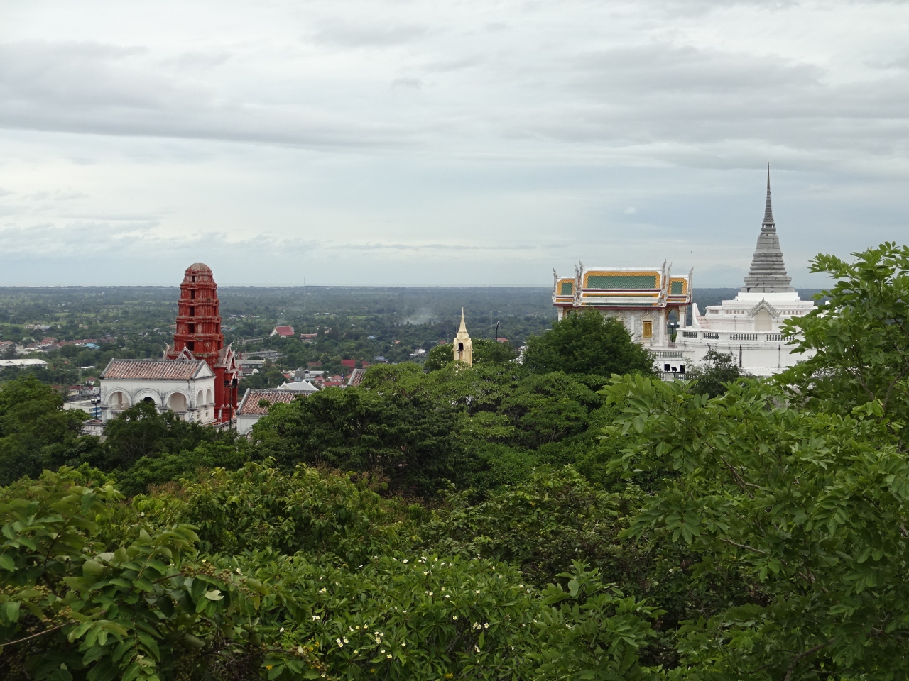 まず、ロープウェイ降り場(我々が行った時には運休していて、歩いて登りましたが)の付近には、内部が博物館になっているラーマ4世の離宮(ここからは、少し歩きますので、体力に自信のない方は、ここだけでもいいかも)。そこから20分くらい歩いて展望台にもなる白い仏塔。さらに20分くらいは歩いて茶色い仏塔とお寺。と見どころが分散しています。