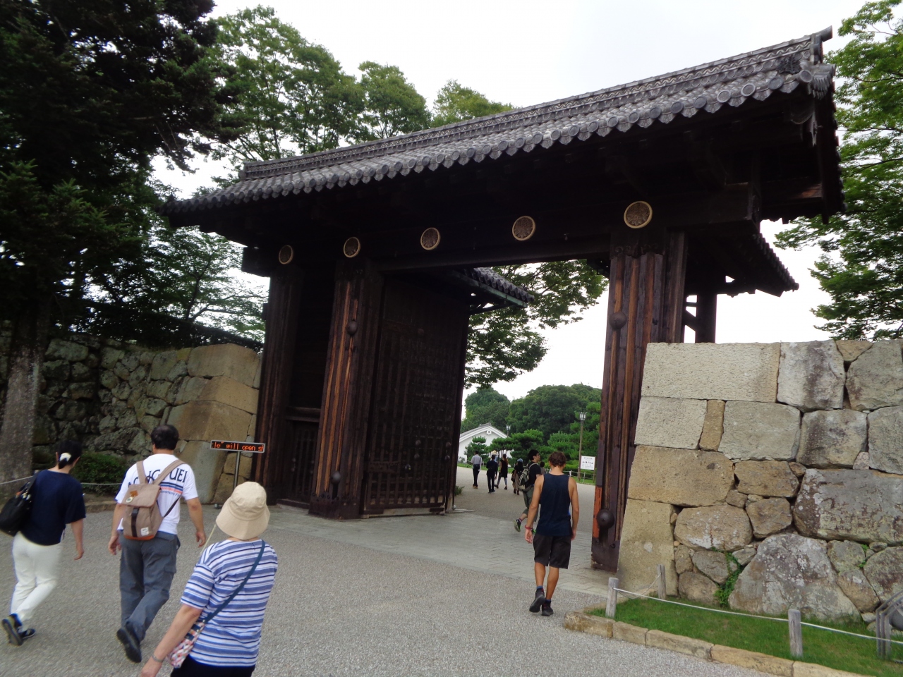 お城らしい立派な門で、右側からちょっとだけ天守閣も見えます。- 旅行時期