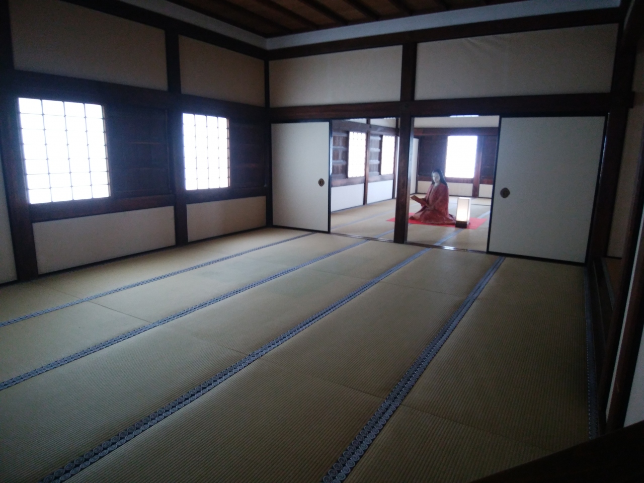 千姫の持参金で建てられたとのことだそうですが、なるほど、畳敷きの広いお部屋になっていました。奥の方に、多分千姫と思われる等身大の人形があるんですが、ちょっと古そうで、一人で座っていることもあり、ちょっと、おどろおどろしい感じもありました。- 旅行時期