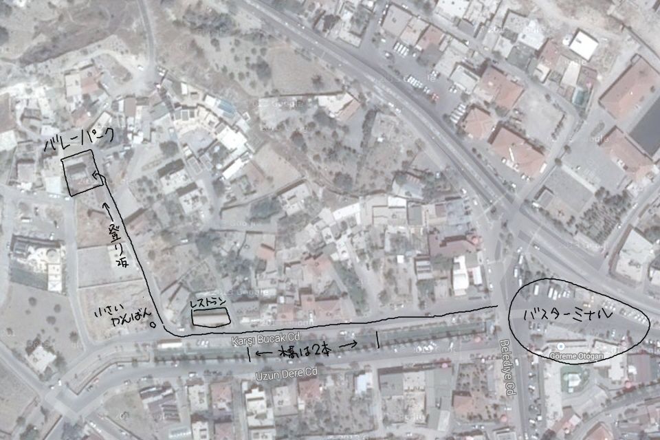 バスT内にあるわき道を上がればゲストハウスまで50mぐらいのところに出ます