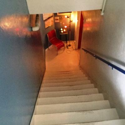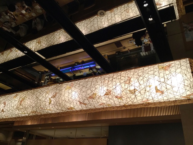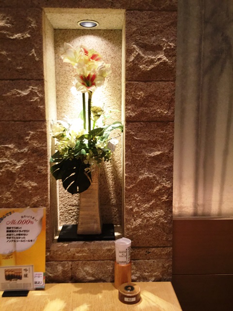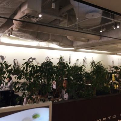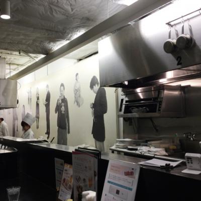 店内は、粋な壁紙で明るい雰囲気です。地下通路とは壁は無くパーテションの仕切りは好き好きであろう。