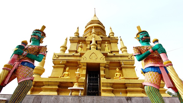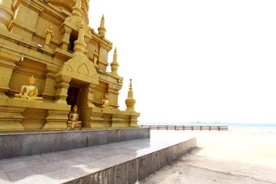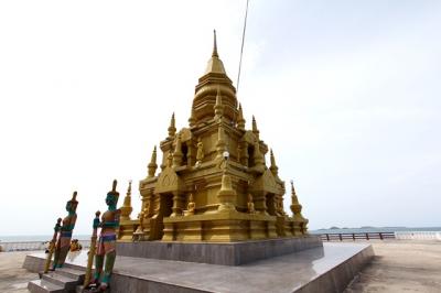 海岸に聳え立つ黄金色の仏塔が特徴で、近くで見ると仏像が配置されており、仏閣としての見応えは充分あります。ビックブッタの様なアクセスの良さは無く、観光者対象の店舗などは存在しませが、一見する価値は充分にあります。仏塔の裏手は、遮る物も無く海が広がりを見せます。