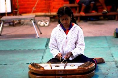 中央部の小広場では、地元の民族芸能的な出し物必ずある様です。