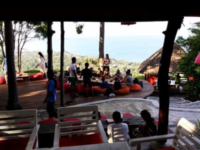 サムイ島での高所景観少なく、好天日にジャングルクラブへ行き、パノラマ景観に呑みこまれたまま語りあえば、特別な想い出ができると思います。ちょっと違うサムイ感生まれます。店舗は山頂近くに所在し、宿泊施設も有る様て、景観はチャウエン街並みからビーチ・その先にバンガン島まで望めます。運が良ければタオ島も見えるらしいです。高所ですから、平地の蒸し暑さは感じませんでした。女性は一枚羽織るものあっても良いかもしれない。レストラン直近山道は急勾配であり、レストランに連絡すると、ピックアップしてもらえます。既にフェランや大陸人には人気高い様で、予約で良い席とられる可能性が高いので、予約した方が良いのかもしれない。