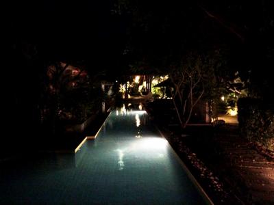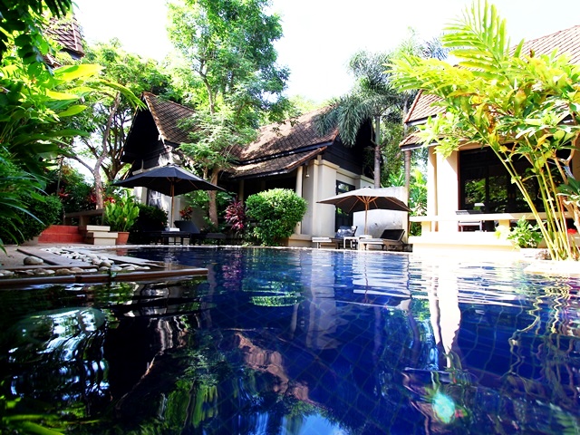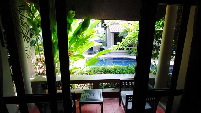 施設はビィラがプールに囲まれ、庭園風な趣もあり、随所にタイランドらしいモニュメントが配置されている。