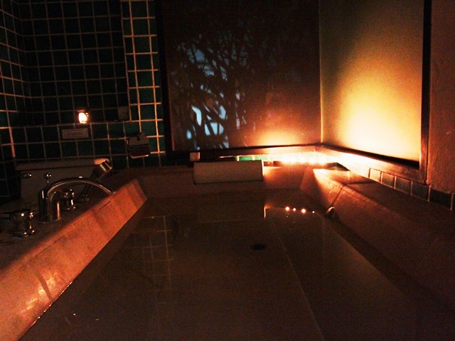 - バスタブにソフト枕埋め込まれてる。ロウソク灯して入浴すれば別空間。灯高炉ありました。