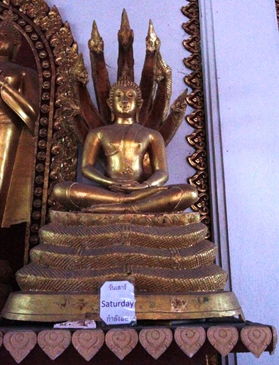 ワットクナラム(ミイラ寺)では靴を脱いだが、ビッグブッタ寺では階段前に時間表示されている看板が出ていた。