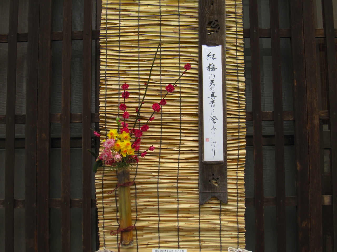 古いべんがら格子のお宅には、地域の保存会の方がお花を活けてあっていいなと思いました。初めは何か特別な家とかお店なのかと思ったら、ここかしこにありました。- 旅行時期