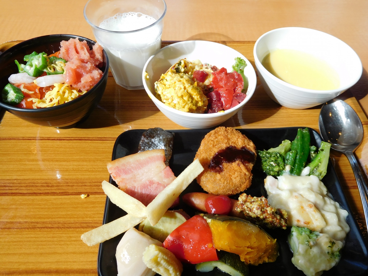 朝・夜とビュッフェが楽しめるようですが、朝食券が使えるので朝訪れました。