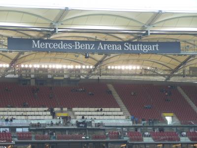 コメルツバンクアレーナは、Stadion駅をおりて、(試合のある日は人...
