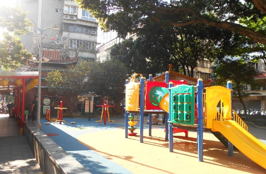 公園近くの小ぶり蒸包の名店円山老崔蒸包のすぐ目の前にある天皇宮が併設された小綺麗な公園。台湾らしい極彩色な建物があり日本の公園とはちょっと違った趣です。あまり目立ちませんがレンタルバイクステーションもありました。