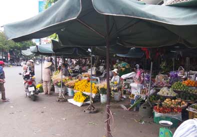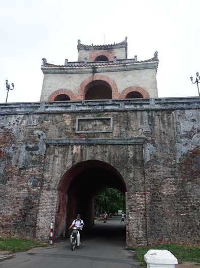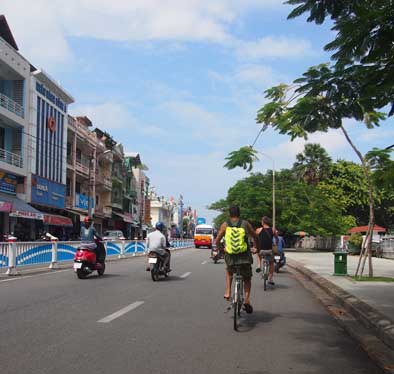 フエの旧市街の比較的活気がある生活道路。王宮の付近の道路は車の通行が制限されているみたいですがココまで来るとバイクやタクシーが行き交います。ほとんどオープンスペースに樹脂のチェアが雑多に並んだローカルなカフェが点在していて地元のリラックススパースになっています。
