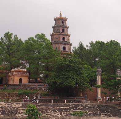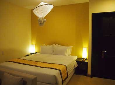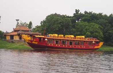 フエの旧市街からはタクシーで10分程度フォン川の上流にあります。川岸の広い土地を利用したプールやレストランを備えたリゾートホテルになっています。フロント棟やレストラン棟と2階建の宿泊棟が3棟ほどありました。部屋は綺麗です。敷地内のポートから市内までドラゴンボートで送ってもらえます。
