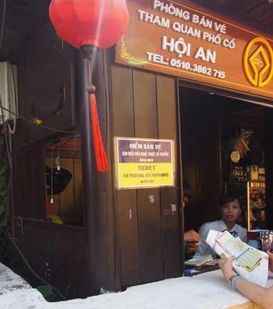 ホイアン旧市街の観光名所は場所によってチケットが必要です。外国人用は五枚セットで1枚90,000ドン。歴史保存地区内に数ヶ所あります。チケットブースによってはしつこく購入を迫られます。特にアンホイ橋は渡るだけでチケットを請求されます。旧市街のホテルに宿泊していたのでそのホテル名を告げると諦めました。