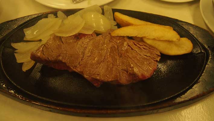 19時ごろにお店に着きましたが40分ほど並びました。その間も車で来る方が多く、駐車場係の方が手際良くさばいていました。席につき周りを見回してみると女性でも250g程度を食べていました。肉質は柔らかく味のある肉でした。レアは相当レアですので悪しからず。