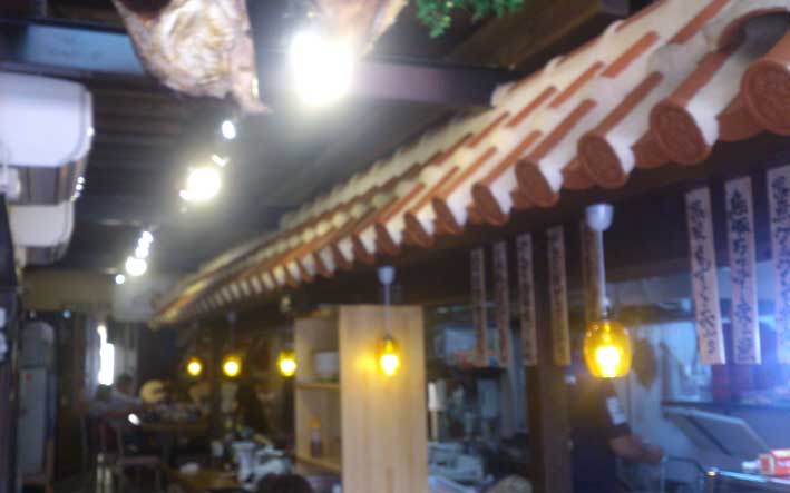 国際通りの大きな看板と魚介の泳ぐ水槽がすぐ目につくお店です。