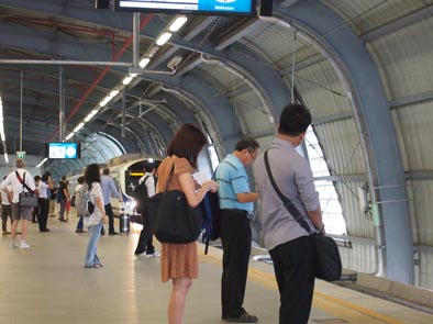 スワンナプーム空港のB1から出ています。エクスプレスとローカルがありますが、時間帯によってはそう大差がないと思います。マッカサン駅でMRTに乗り換えようとしたら以外と歩きました。BTSに乗り換える事も考えると市内に行くには微妙な便利さ・・・です。