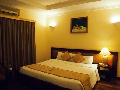 ドンコイ通りエリアでホテルを探していたのでネットで予約、2泊しました。建物はやや古いですが良く清掃されていて清潔感があります。ドンコイ通りはショッピングエリアなので夜は逆に静かでした。朝食は6Fの食堂でツアー客も結構多いですが比較的ゆったり食べられます。メニューは簡単な寿司を含めフォーなど暖かいものもあります。