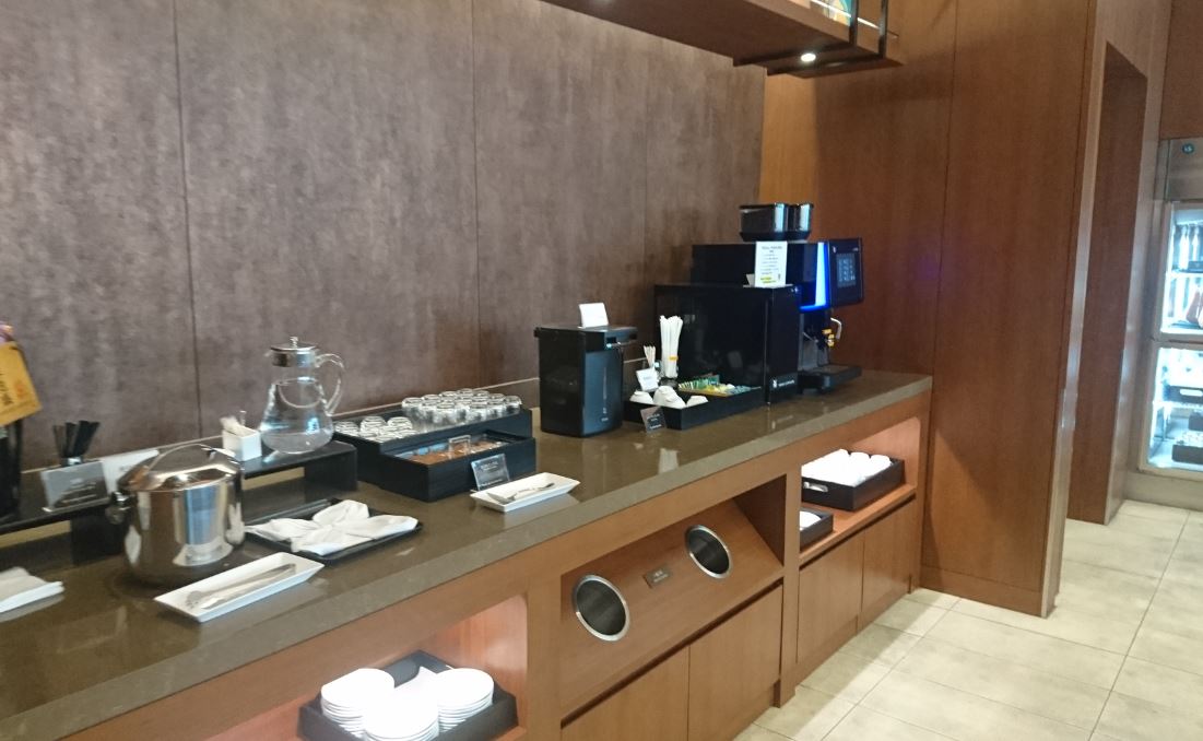 以前の那覇空港のJALラウンジはスクエアなスペースに大きなソファが整然と置かれてゆくだけで衝立やプライベートスペースが無く退屈な感じでした。今回使用してみたらきれいに改装されていました。最近のJALの傾向でシックでプライベートスペースやおひとり様用の配慮もありました。