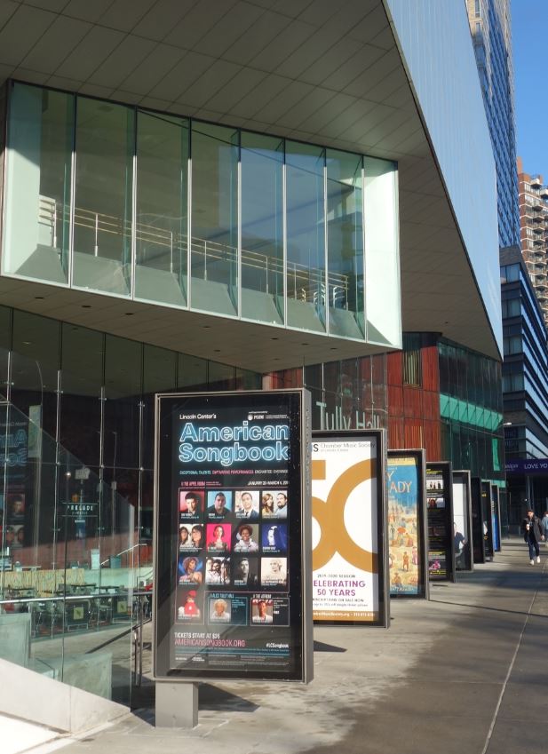 アッパーウエストのブロードウエイ沿いにあるガラス貼りの外見が近代的なコンサートホール