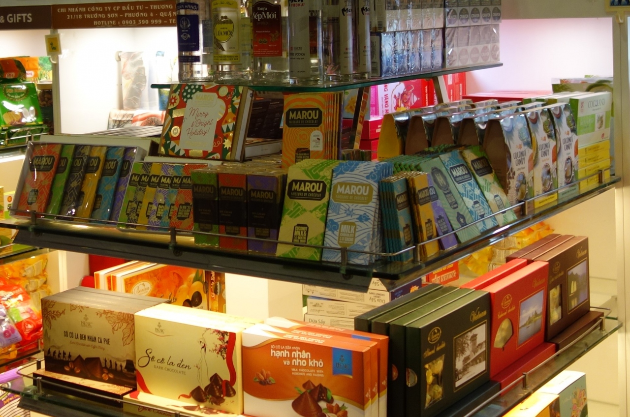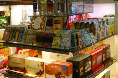 Sasco Duty Free (タンソンニャット国際空港) は何年かまえは市内のお土産屋さんかと思うぐらい質素(?)な免税ストリートでした。その割に価格は市内の数倍と言った感じでした。今回見てみると昔に比べてかなりアップデートされました。ベトナムの最高級チョコレートMAROUも売っていました。