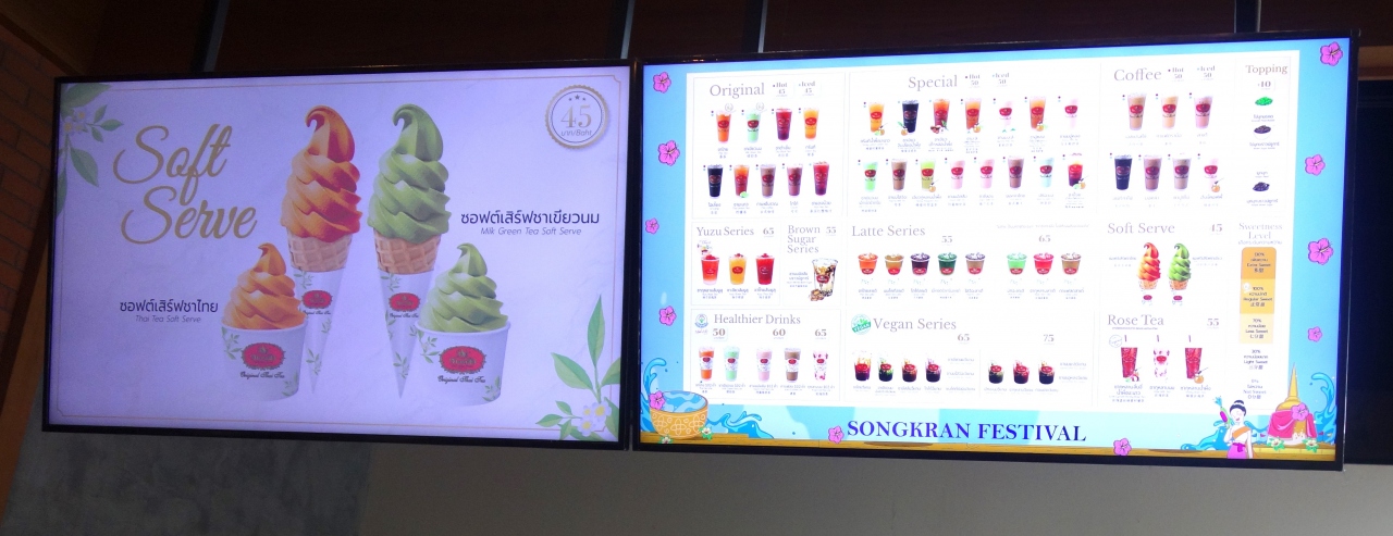 日本人にはあまり有名ではないかもしれませんがタイのミルクティーは現地でもポピュラーな飲み物。オレンジ色のミルクティーが特徴です。Cha Tra Mue はRタイティ―のスターバックスの様な店舗で Walk Bangkok通路の2F入口に店舗があります。