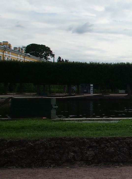 サムソノフスキー・カナルの左右に並ぶ大理石の回廊は18世紀から数名の著名な建築家の手により解体・改築を繰り返して今のステージになりました。運河の青と公園の緑に映える白い外壁と黄金の屋根がきれいなコントラストです。サムスンの噴水を眺める絶好のポイントにもなっています。