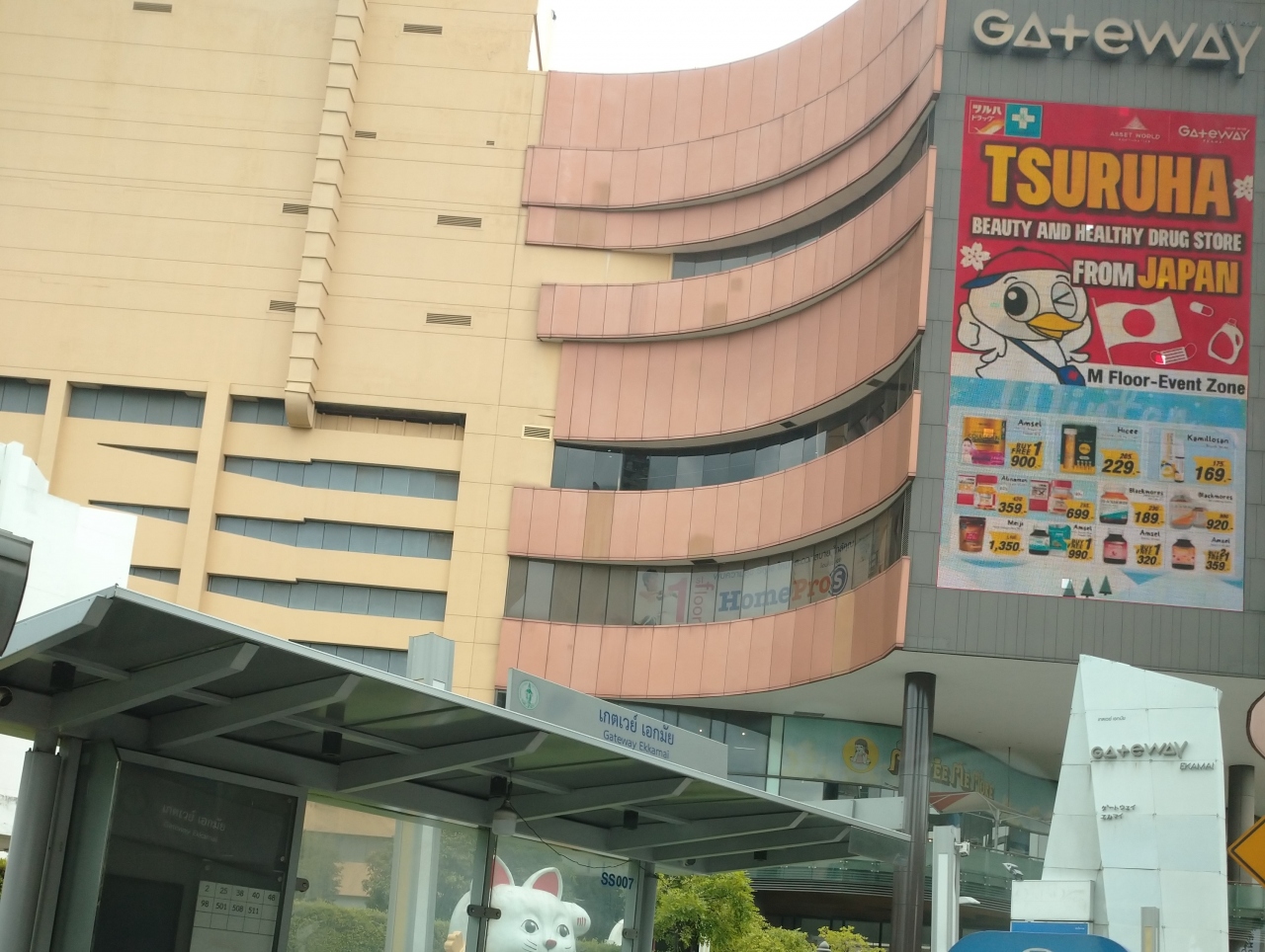 ゲートウェイ エカマイ(Gateway Ekamai)はBTSエカマイ駅の目の前にあるショッピングセンター。レンガ色の曲線デザインが特徴です。テナントは結構入れ替わってますがやはり日本カラーの濃い品揃えが特徴ですね。東バスターミナルも隣にあってバス出発前の買い物に便利です。