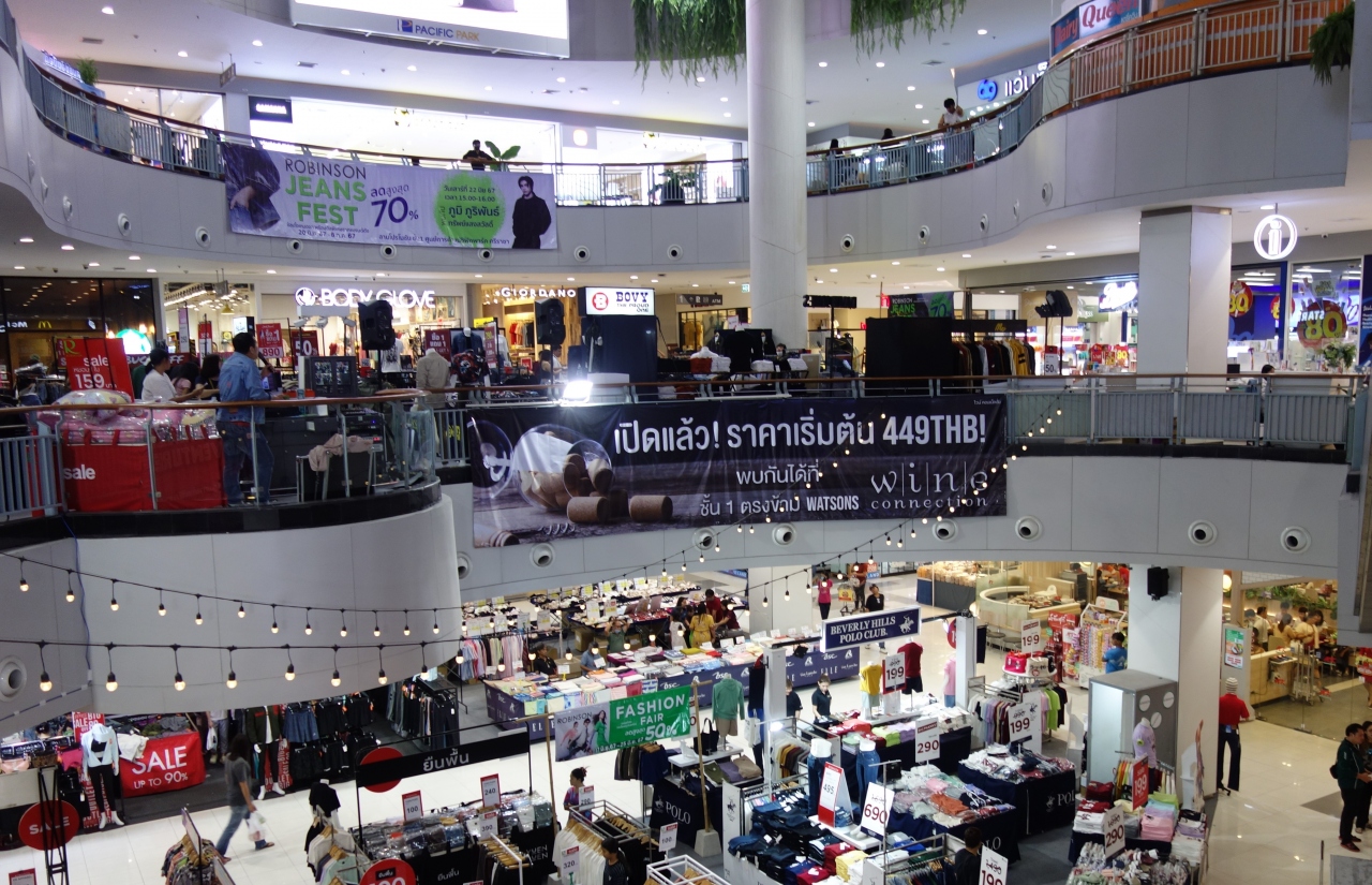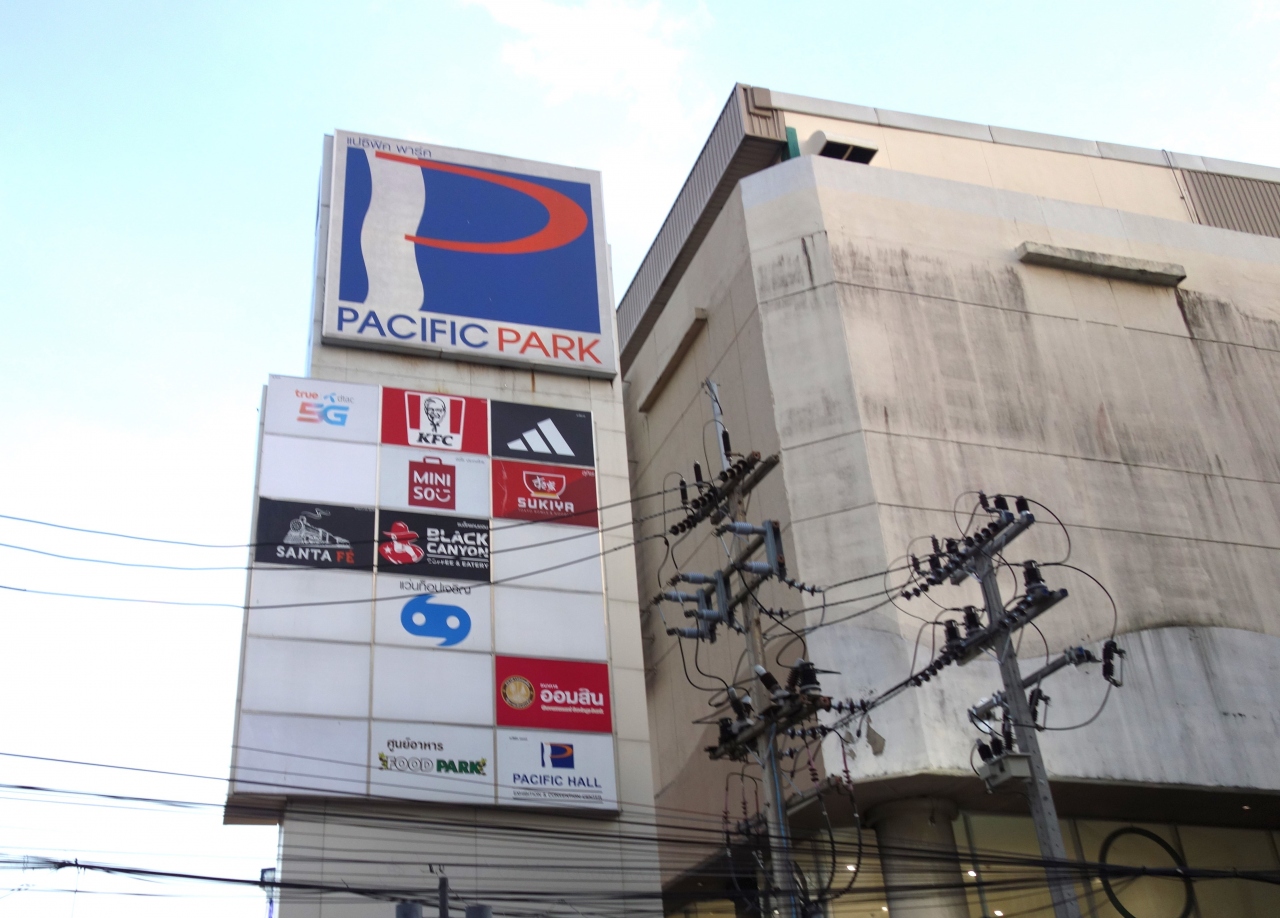 パシフィックパーク シッピングセンター スリラチャ (Pacific Park Shipping Centre Sriracha)バンコク発着の長距離バスの発着点になっており、曜日によって大きなナイトマーケットが開催されるシラチャ市内中心部のランドマークです。