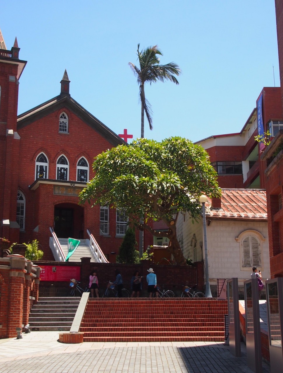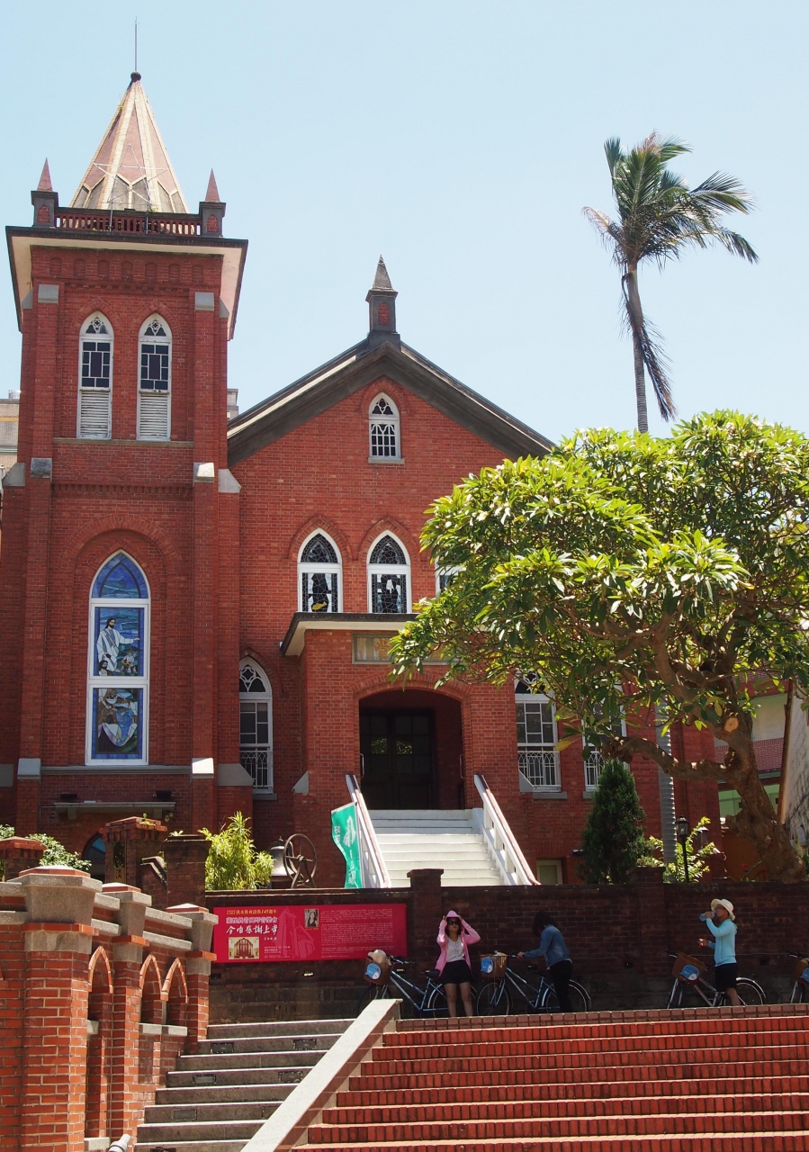 淡水老街の中程、少し小高くなった通りに面して淡水礼拝堂は佇んでいます。南国に近い淡水の日差しに濃い赤煉瓦の建物がとてもエキゾチックな感じが素敵ですね。建物は西洋風ですが礼拝堂の造り自体は細かく端正な建物になっています。