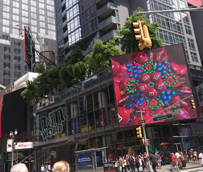 ハーシーズと並んでタイムズスクエアのチョコレートショップの代表的な存在がエム & エムズ ワールド ニューヨークです。ハーシーズと比べると関連グッズやキャラクターグッズが多くマニアックです。大型スクリーンで大々的に宣伝中です。
