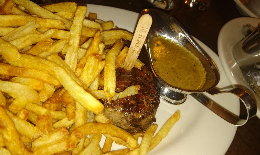 宿泊したホテルでお薦めステーキハウスを聞いて訪問しました。老舗ですがそんなに高価ではないと聞いて決まました。バーカウンターは既に結構な人混みで立ち飲みで15分程すると席に案内されました。席間は狭いですが不快ではないです。エージドビーフを粗びきソルトで頂きました。とてもおいしかったです。