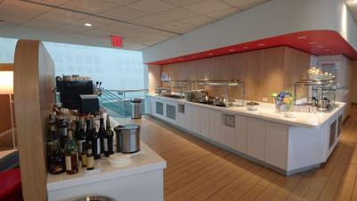 エールフランスラウンジはJFK空港ターミナル1の登場ゲートの奥にあります。1Fのレセプションエリアのスペースと食事や飲み物が並んでいる2Fになっています。昼の便で帰国の際に利用しましたがオープン直後みたいで食事の準備が出来ていませんでした。食事は軽食中心で飲み物は結構な種類がありました。