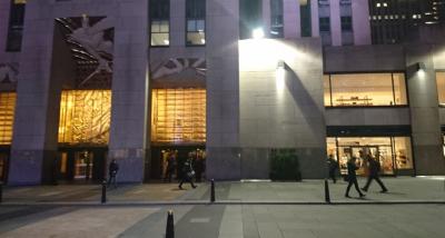 クリスマスツリーで有名な観光スポットであるロックフェラー センター(Rockfeller Center)。ニューヨークのメインストリート5thと6thに挟まれた一等地にあります。タイムズスクエアからも歩いて2~3分ですね。ショッピングモールエリアは黒とゴールドの看板に統一されていて老舗感が漂ってます。