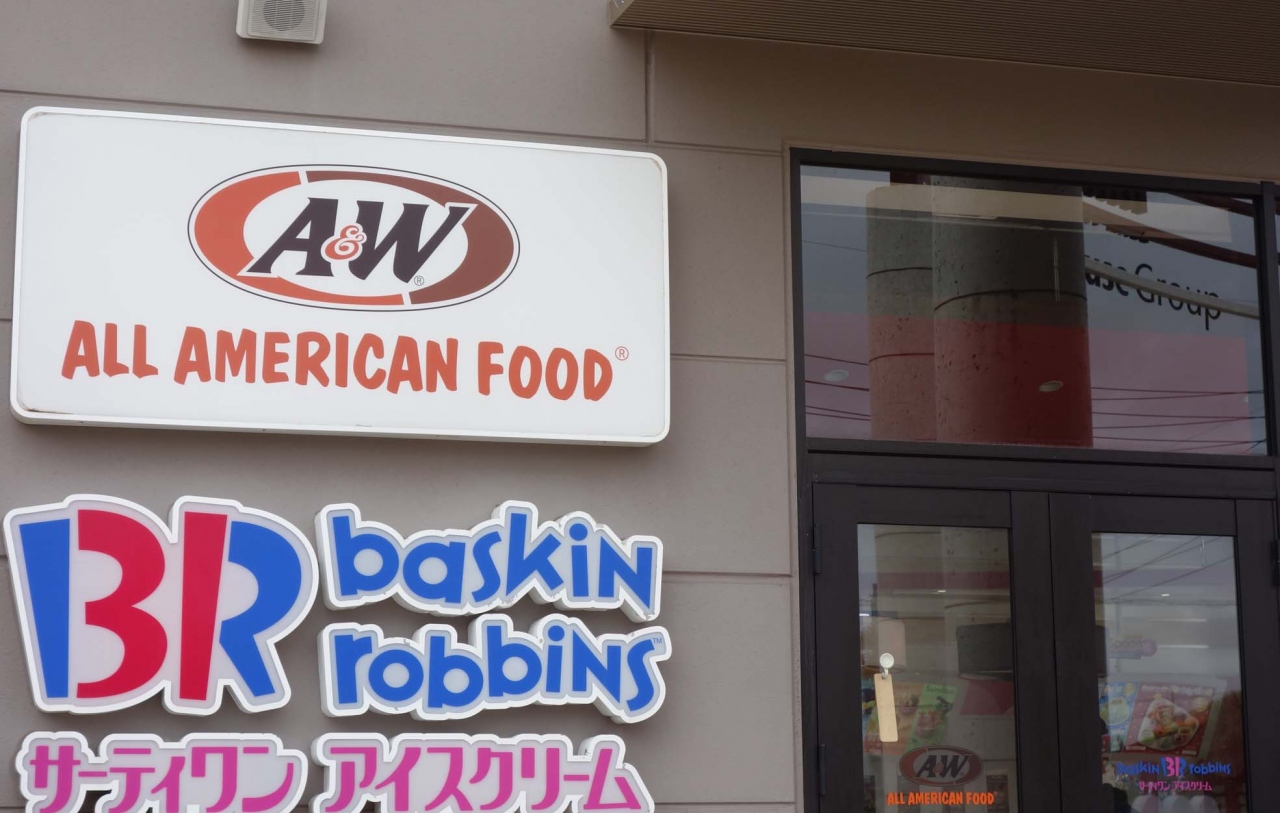 沖縄アウトレットモールあしびなーの中に併設されたA&W。あしびな―はオープンモールのアウトレットなので夏の暑い時期には絶好のオアシスとなります。壁面も大きなガラスになっていて適度なオープンカフェ感覚です。サーティワンアイスクリームも併設されています。