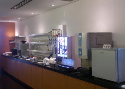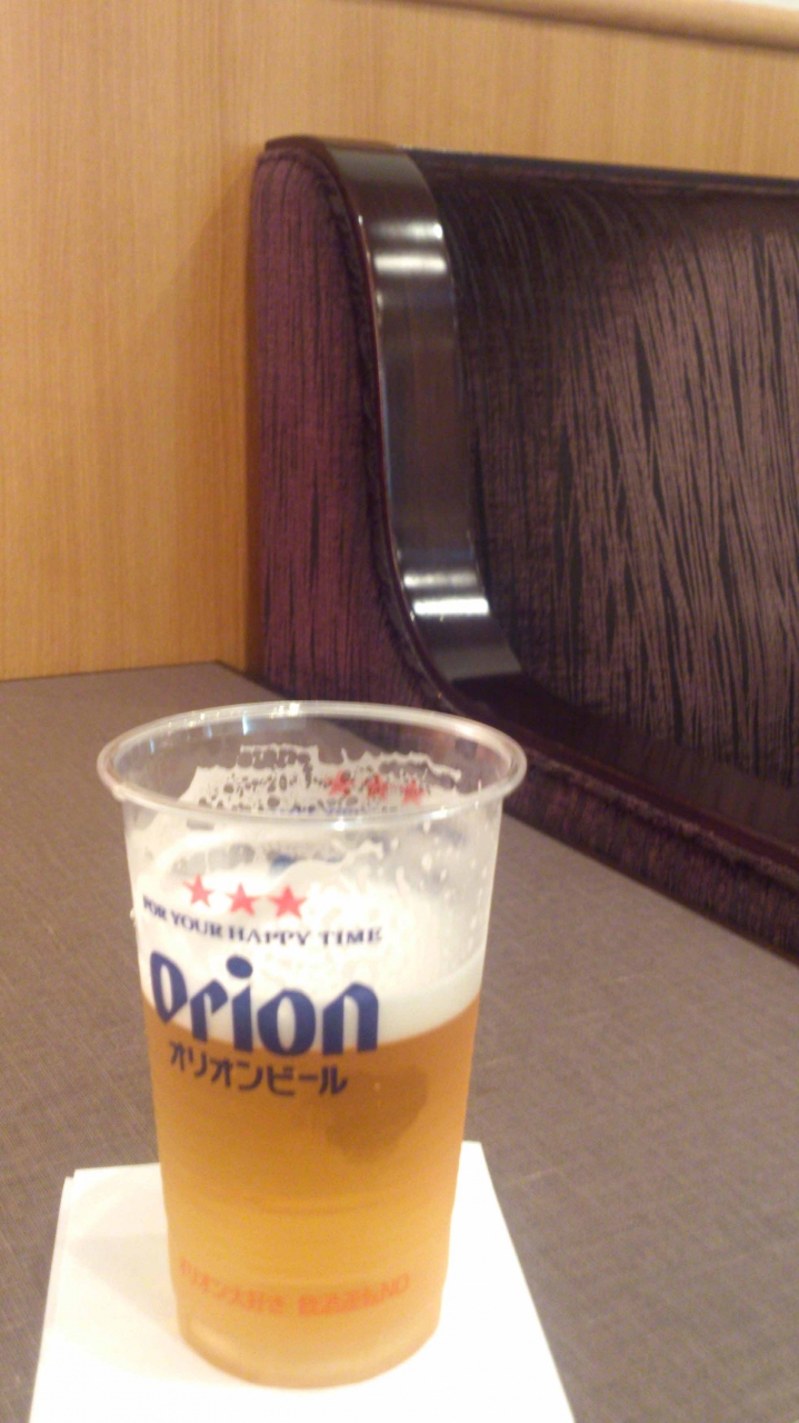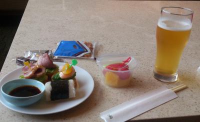 地方空港の国内線ラウンジと比べると広さはありました。ただ同型のソファーが整然と並べられていて人数を座らせる事だけが目的みたいでした。食べ物は小分け袋のスナック程度ですが、オリオンビールのサーバーがありました。泡盛もあったみたいです。