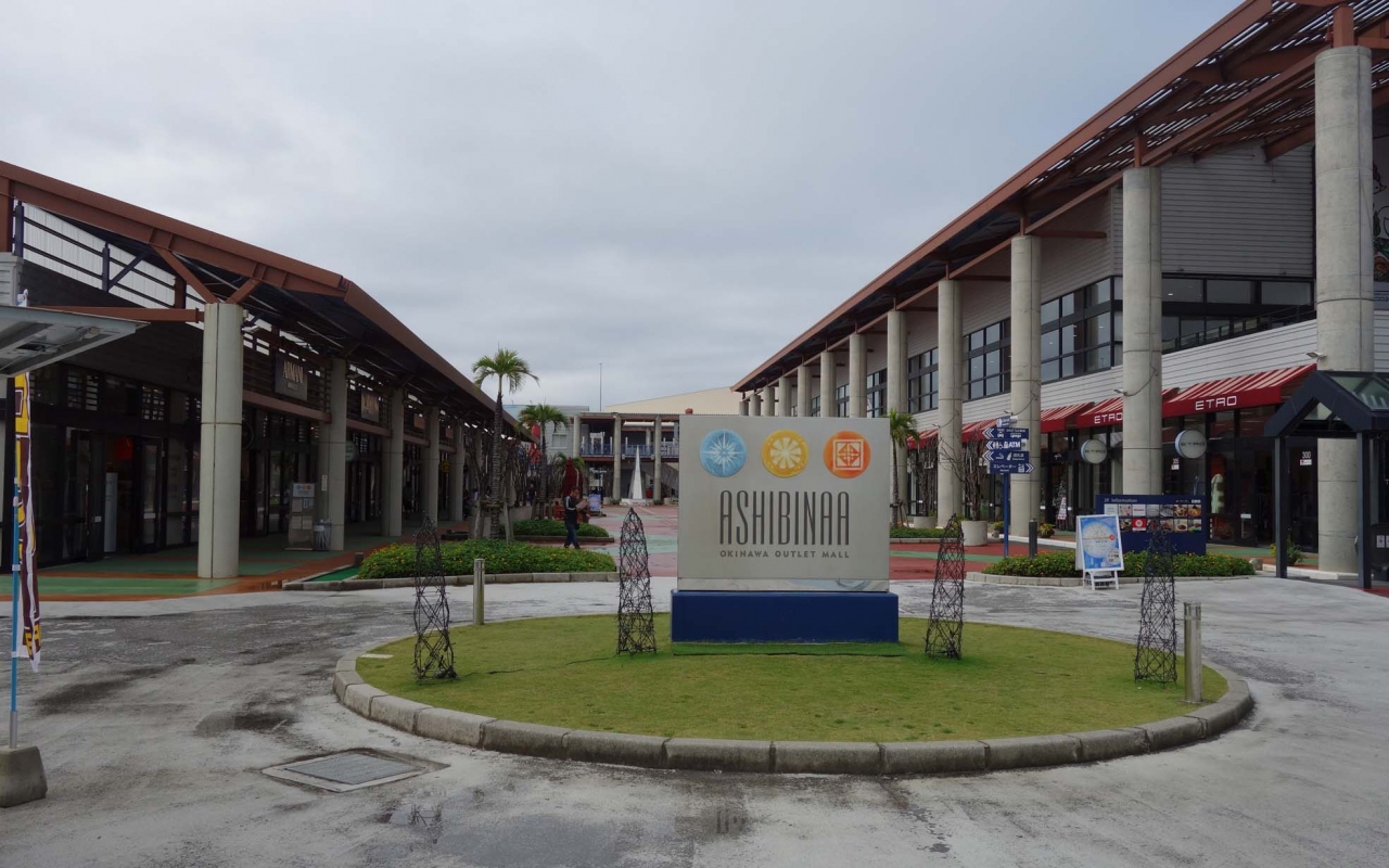 那覇空港に着いた時間に丁度沖縄アウトレットモールあしびなー行き路線バスがあったので飛び乗りました。運行は1時間に1本で荷物を抱えた中国人観光客も多くバスは混んでました。15分程度で着きます。以前は無料シャトルバスがあったみたいです。平日だったのでモール自体は空いてました。ここは三井やプレミアム系では無くて大和ハウスグループの運営なので国内ブランドが多いアウトレットモールですね。2F建てですがほとんどは1Fにブランド店舗があります。