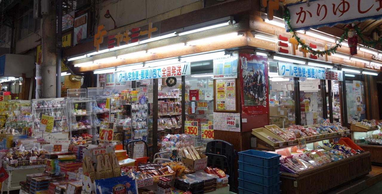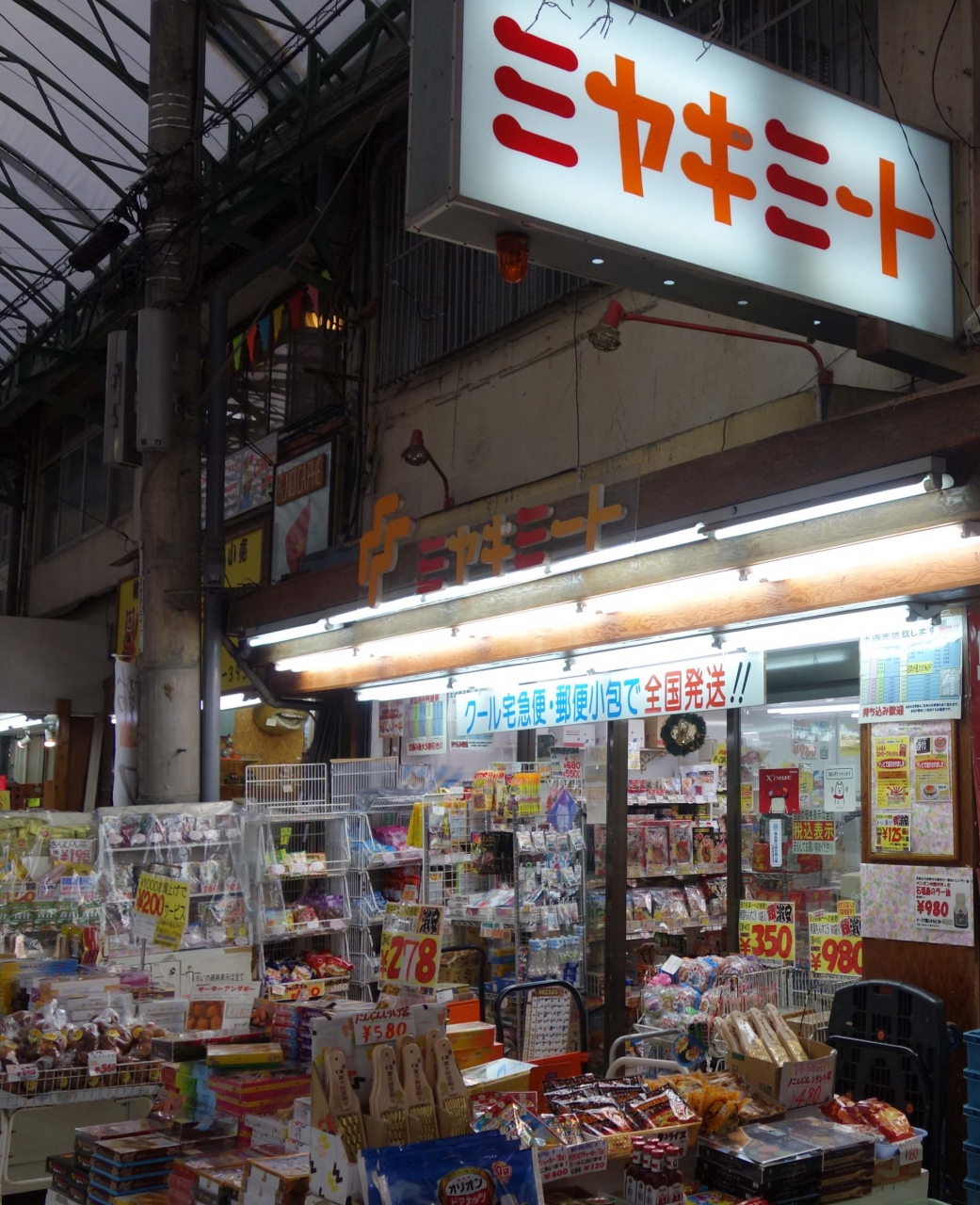 市場本通りを更に奥に進み牧志公設市場を越えた市場中央通りにミヤギミートはあります。店の前ははみ出す様に沖縄物産が並んでいます。ランチョンミートなどが良く売れているようです。お土産も他の店舗よりはチョット安い気がします。