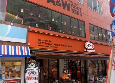 沖縄ローカルのファーストフードと言えばA&Wのハンバーガー。いつの間にか国際通り横に出来てました。斜めの路地に沿った建物でもう少しで通り過ぎるところでした。A&Wのハンバーガーは大振りで具沢山なので歩きながら食べるには難しいので店内でたべます。ココは3階建てなのでゆっくりくつろげます。