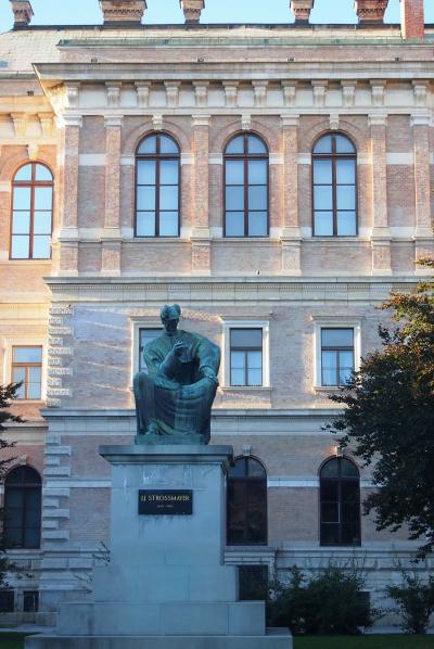 ザグレブ市内の名所である、聖マルコ教会・石の門教会を観光した後に見ました。この聖ジョージ像をとり巻く様に坂道が続いています。像の台座の下には聖ジョージの有名な逸話である竜退治の様子を表しているようです。