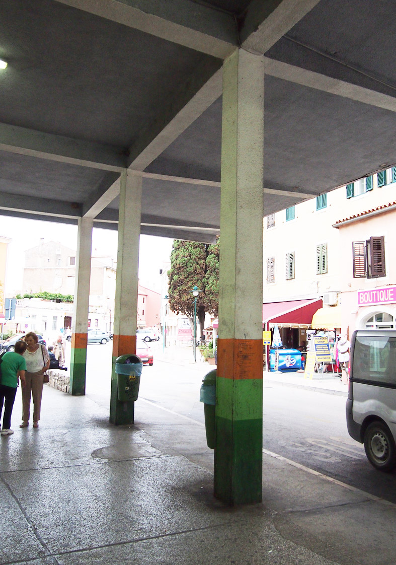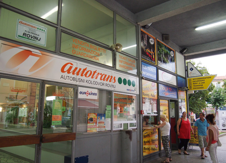 旧市街のMattea Benussia通りの曲がり角にありました。中長距離バスの発着も多いはずですがバスの停車スペースも2本しかありませんでした。目の前にチケット売り場と小さなキオスクしかない街の規模の割には小さいバスターミナルです。近くに観光案内所があります。