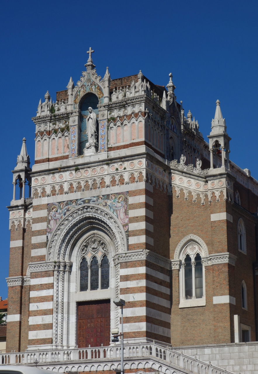 リエカの港を見下ろす様に建てられた教会。赤レンガと白レンガの二色のレンガで構成された建物は全く古さを感じさせない綺麗さです。モダンゴシック建築様式だそうです。建築は1904年から1908年の間に建てられたそうです。