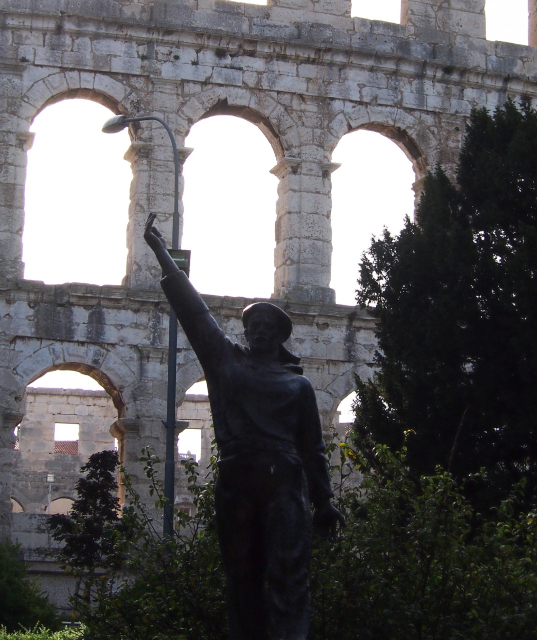プーラの円形劇場(Pula Arena)の入場口前からプーラ港の間にある小さな公園です。船員さんのモニュメントがありました。海までゆっくりした下り坂になっていて円形劇場から出て海までの丁度良い散歩ルートになっています。