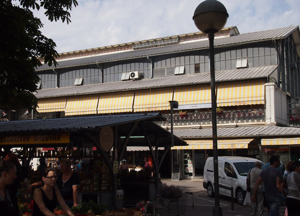 TRŽNICA d.o.o.はプーラの街の公設市場のような感じでした。1階は生鮮・魚介にちょっとしたお土産を扱うスーベニアショップが並んでいます。向かいの広場は市場がたっていてプーラの名産でしょうかはちみつを売る露店が並びます。
